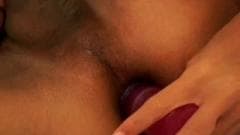 A trans asiática Mooa Winhi tem um corpinho muito sensual. Ela vai acariciar os peitos, o pau e o cuzinho com os dedos, e depois enfia um vibrador. Gostosa