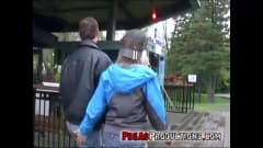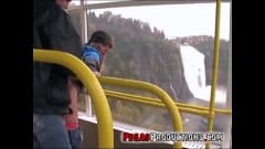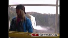 A loira atrevida Candy Kiss realiza sua fantasia de transar com o cara na cabine do teleférico, em frente a uma vista de tirar o fôlego nas alturas.