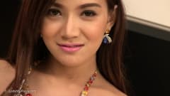 Este travesti sabe como usar seu dildo. Ele acaricia seus seios com ela, assim como seu grande clitóris e sua vagina recém-construída.
