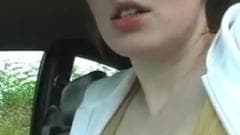 Ela está desesperada para gostar de sexo, mesmo que esteja sozinho e dentro do carro. Então ele se masturba e acaricia a buceta com os dedos