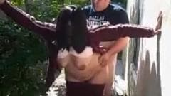 Essa morena é muito fácil para o sexo e quando ela entra em sua casa, ela recebe uma vizinha que a fode no corredor ao ar livre.