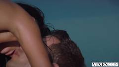 Novinha magrinha toda bronzeada senta bem gostoso em uma cavalgada na pica grande e grossa na piscina de uma mansão de seu amante