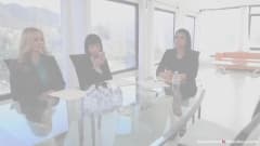 Divirta-se com essas quatro mulheres bonitas fazendo sexo no meio de uma reunião de trabalho em que elas não podem suportar o desejo de foder.