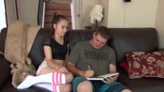 Esses jovens são inexperientes e decidiram tentar fazer sexo no sofá. Eles começam com cunilingus, passam por 69 e terminam em cowgirl.