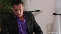 A enteada sexy do vizinho veio tomar banho depois da piscina na casa deles e o marido excitado a seguiu até lá e a fodeu.
