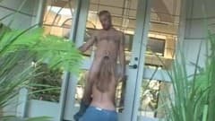 Esta loira está com fome hoje e depois de trepar num pau agora ela quer comer o saco das bolas! Que puta gananciosa!