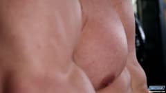 Este macho musculado está sozinho agora e é por isso que ele vai se masturbar em silêncio na academia antes que os outros cheguem!