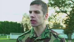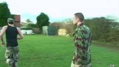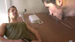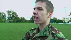 Seu sargento o encontrou nu no chuveiro procurando seu sabonete e conseguiu resistir ao jovem soldado.