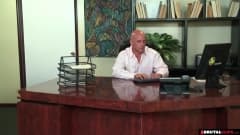 Esse cara não suporta o desejo de foder sua secretária sexy. Sua saia curta o excita muito, então ele a monta na mesa e a fode ricamente.