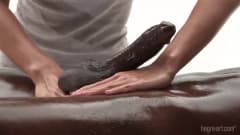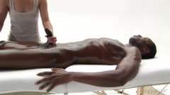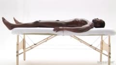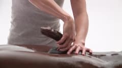 Negão da pica grande e grossa paga para uma branquinha safada fazer uma massagem gostosa com direito a masturbação e oleos
