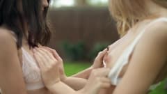 Garotas lésbicas gostosas ficando excitadas no jardim