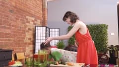 Dodi e Rubi são duas garotas maduras que estão cozinhando juntas e ficaram excitadas. Elas usarão um pepino para dar prazer uma à outra.