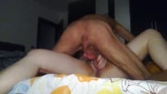 A mãe está em estilo cãozinho, pronta para ser fodida. Tudo o que ela está esperando é o pau do papai a perfurar a sua velha e gorda buceta