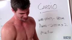 Com seu corpo cheio de músculos e tatuagens, Sebastian Young deixa o pau de seu amigo Bryan Cavallo duro e fode sua bunda de pé.