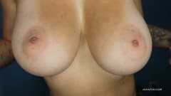 Uma bela loira se orgulha de seus seios naturais e se orgulha deles na frente da câmera, mostrando-os e acariciando-os sensualmente.