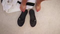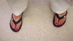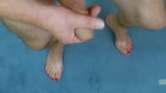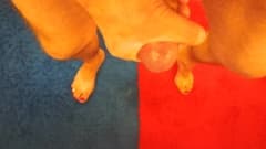 Ele tem as unhas dos pés vermelhas e o faz querer se masturbar. É por isso que ele se diverte tanto nessa cena que se grava.