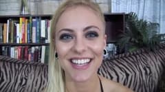 Este vídeo POV apresenta uma loira sexy chupando um pau grande e chupando suas bolas para receber uma grande gozada em seu rosto!