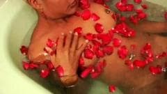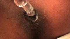Depois do banho relaxante e cheio de sensualidade, uma trans loira se diverte metendo um dildo transparente no ânus, e se abrindo com os dedos!