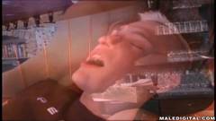 Esses dois homens decidem se divertir um pouco antes do trabalho. Debruçados no balcão do bar, eles se chupam e o moreno fode o loiro até ambos ejacularem!