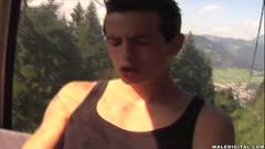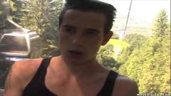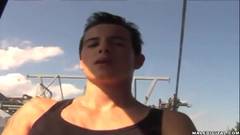 Depois de uma boa viagem e de apreciar a vista, o homem bonito chega em casa e começa a se masturbar intensamente. Coisa de tesão!