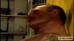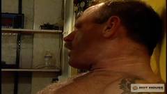 Essa linda DILF com um bigode sexy da velha guarda e um corpo grande e musculoso transa com um cara mais jovem e magro na bunda.