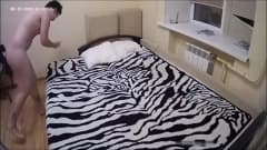 Duas garotas gostosas fazendo um show pornô amador convidaram um cara para se juntar a elas no quarto para começar a diversão.