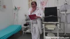 Essa senhora visita seu ginecologista que, além de fazer uma revisão completa de sua vagina, faz com que ela se divirta muito com brinquedos sexuais.