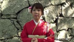 Essa linda asiática está vestindo um quimono vermelho e não está usando calcinha, então ela vai nos deixar ver sua buceta antes que o cara a transa.