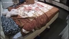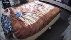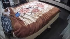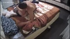 Ele faz um cunilíngua gostoso demais para essa morena excitada que vai se divertir na cama sem saber que a câmera está gravando.