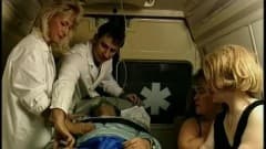 Estas duas putas pararam uma ambulância no meio da rua e agora fodem com um desconhecido neste menage excitante!