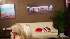 Essas duas mulheres loiras são muito safadas e se oferecem a esse cara porque querem se divertir com ele. Eles se despem e chupam seu pau até gozarem.