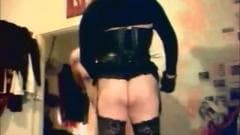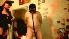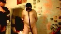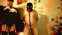 A travesti vestida de policial, Madame Crudelitas como é conhecida, domina completamente esse cara encapuzado. Ela tortura seus mamilos e ganha um boquete!