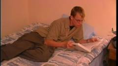 O garoto chega em casa depois da aula de matemática e começa a estudar. Mas, na verdade, ele está mais interessado em se masturbar e se divertir.