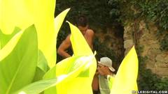 Esses caras selvagens adoram fazer sexo na natureza. Chupação de pênis e sexo anal no meio da selva.