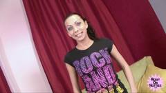 Morena esbelta abre bem a buceta no início de um casting pornô