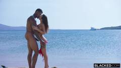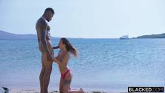 Liya Silver vai ter um momento de muito prazer com um negro gostoso numa praia. Ele é muito gostoso e a morena aproveita ao máximo chupando e fodendo de 4!