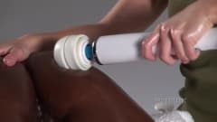 Essa negona gostosa da buseta escura recebe uma massagem bem gostosa da novinha branquinha que usa até vibradores na negona safada