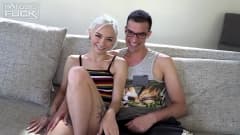 A bela senhora vai chupar esse cara de óculos até que ele tenha a melhor ereção de todos os tempos. Então ela vai sentar no pau e desfrutar.