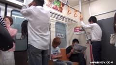 Mulher asiática tímida fodida por uma gangue dentro do metrô