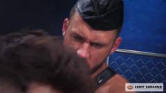 Você tem que obedecer ao seu mestre, esse garoto é totalmente dominado por seu mestre sexy em uma roupa de couro.