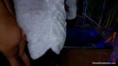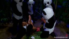 Ashli Orion acorda cercado por alguns pandas muito malvados e sádicos que a despem e a fodem sem contemplação. No final, ele se empolga