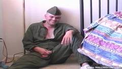Steve Atkinson é um soldado excitado que adora sacar seu pênis enquanto ainda está usando seu uniforme e se masturbar!