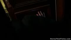 Kitty Jane está tomando banho quando é surpreendida por dois ladrões mascarados que querem transar com ela mais do que roubá-la! Não perca!