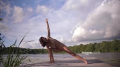 Você não pode perder essa linda morena completamente nua fazendo ioga nas mais belas paisagens naturais que você possa imaginar!