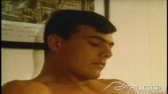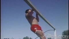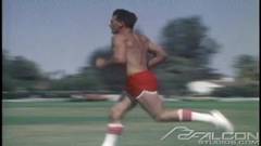 Um cara muito atlético, com muitos músculos, se exercita bastante antes de descansar na cama e se masturbar com seu pênis grande.