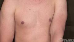 As bolas de Blaine Hardy estão cheias de esperma. O cara vai se masturbar e, quando ejacula, o sêmen quase escorre pelo seu rosto.