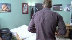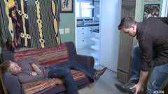Phenix Saint e Philip Aubrey se divertem na cama. O loiro tira a calça e começa com um boquete.