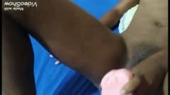 A donzela de ébano esta empolgada, ela se dilata com grandes dildos antes de ser fodida por um galo branco.