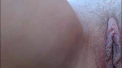A mulher leva uma surra na boceta carnuda e começa a se masturbar. Isso vai fazer ele gozar! Ele até enfia um pouco o dedo na bunda.