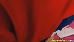 Travesti ejacula depois de se masturbar